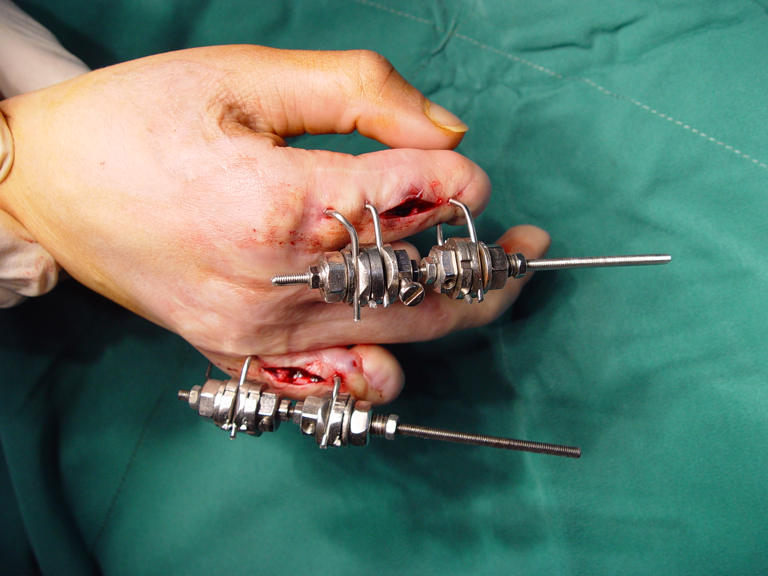 - هنگام عبور وایر در عضله پوست هنگام افزایش طول: پوست رادر خلاف جهت حرکت رینگ بکشید تا در موقع حرکت رینگ و افزایش طول پوست کمتر جمع شود.